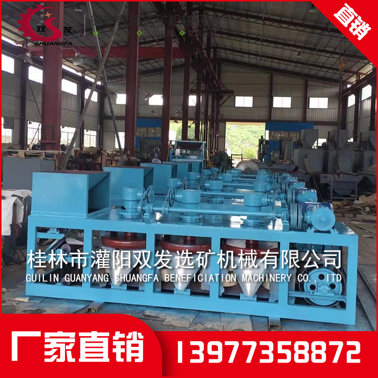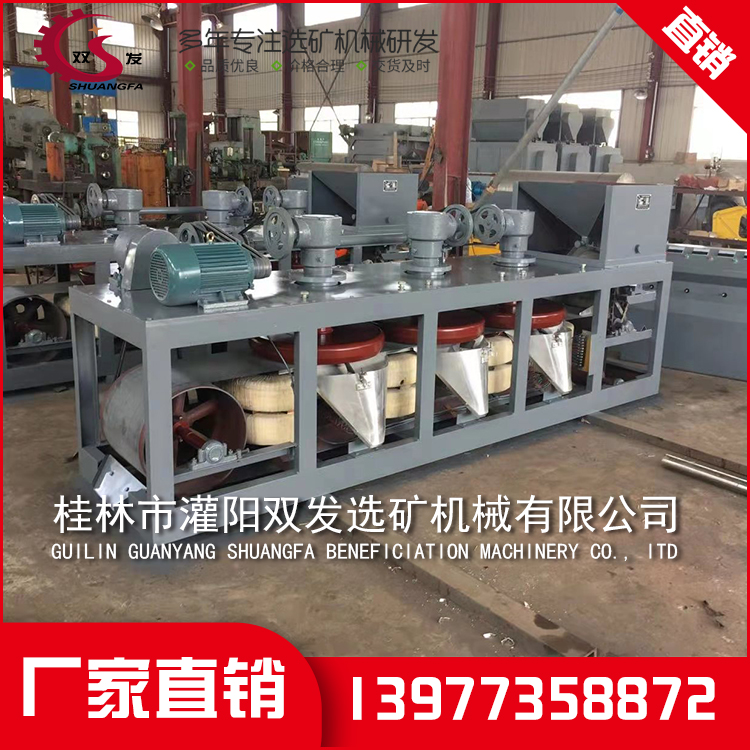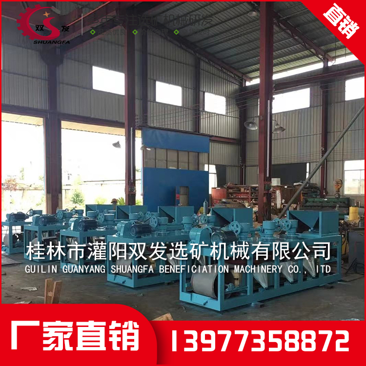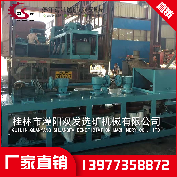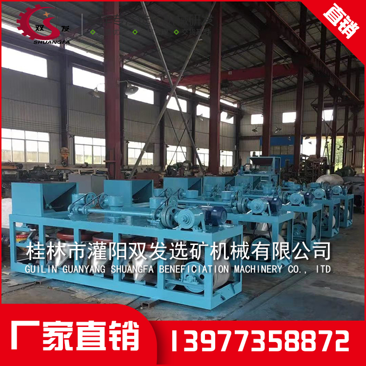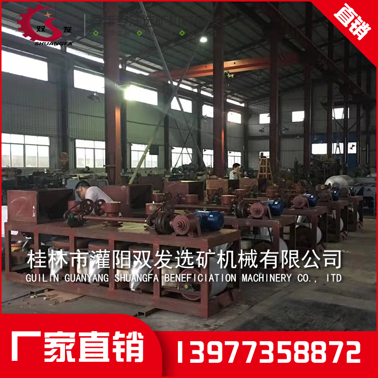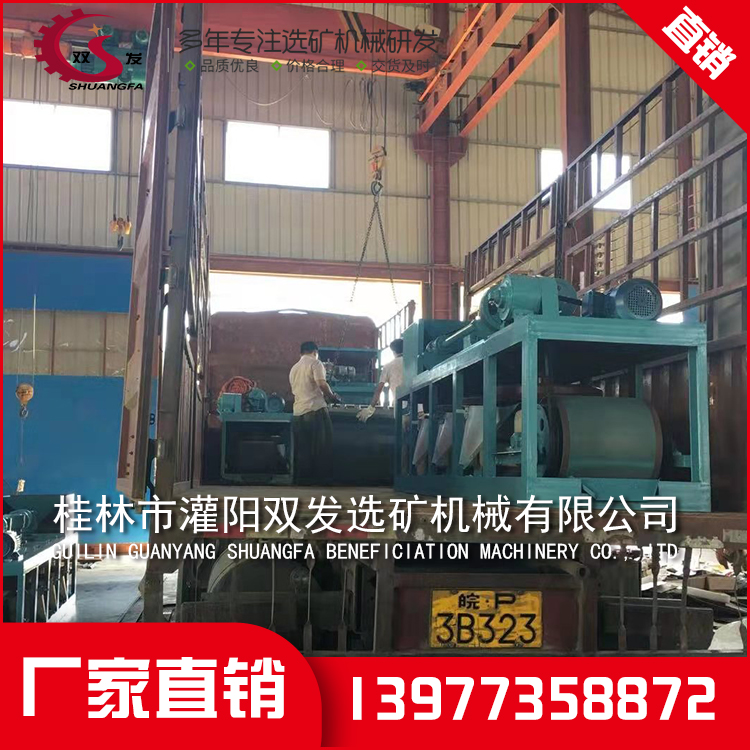 磁选机是使用于再利用粉状粒体中的除去铁粉等筛选设备。矿浆经给矿箱流入槽体后,锰矿选矿设备在给矿喷水管的水流作用下,矿粒呈松散状态进入槽体的给矿区。在磁场的作用,磁性矿粒发生磁聚而形成“磁团”或“磁链”,“磁团”或“磁链”在矿浆中受磁力作用,向磁极运动,而被吸附在圆筒上。由于磁极的极性沿圆筒旋转方向是交替排列的,并且在工作时固定不动,“磁团”或“磁链”在随圆筒旋转时,由于磁极交替而产生磁搅拌现象,被夹杂在“磁团”或“磁链”中的脉石等非磁性矿物在翻动中脱落下来,最终被吸在圆筒表面的“磁团”或“磁莲”即是精矿。磁选机广泛用于资源回收,木材业、矿业、窑业、化学、食品等其他工场,适用于粒度3mm以下的磁铁矿、磁黄铁矿、焙烧矿、钛铁矿等物料的湿式磁选,也用于煤、非金属矿、建材等物料的除铁作业,是产业界使用最广泛的、通用性高的机种之一。