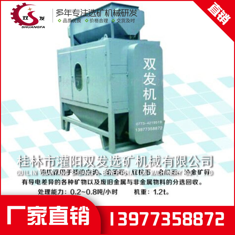 桂林选矿机械设备DXJ六万伏单(双)辊式高压电选机该机适用于精选白钨、锆英石、红柱石、金红石、沙金矿等 有导电差异的各种矿物以及废旧金属与非金属物料的分选回收。